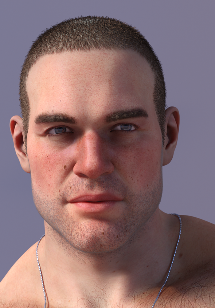 In my example I´m using one of 8 presets. It uses 3 geoshells. The original skin is Rocco, which already has a few birthmarks and is a little ruddy to start with.