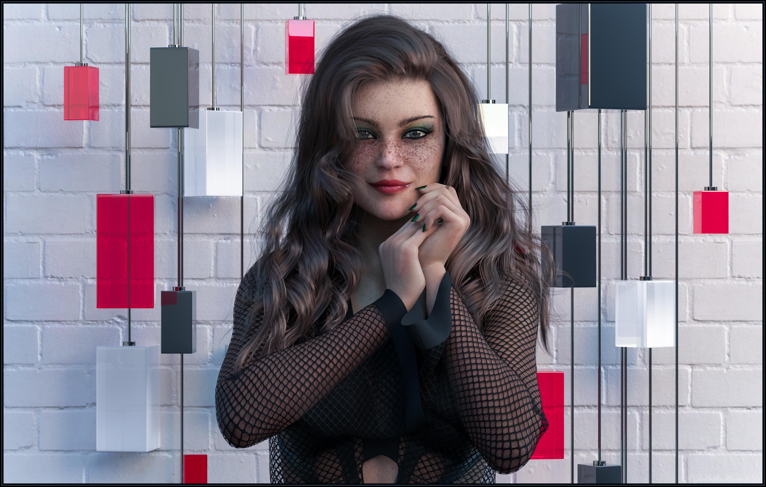 @daventaki   I like that character, I have her but I hadn't rendered. I personally like the more subdued freckles but it's good to know how to tackle getting them to show up more. That's a nice background and goes well with her. Black and red, you can't go wrong.