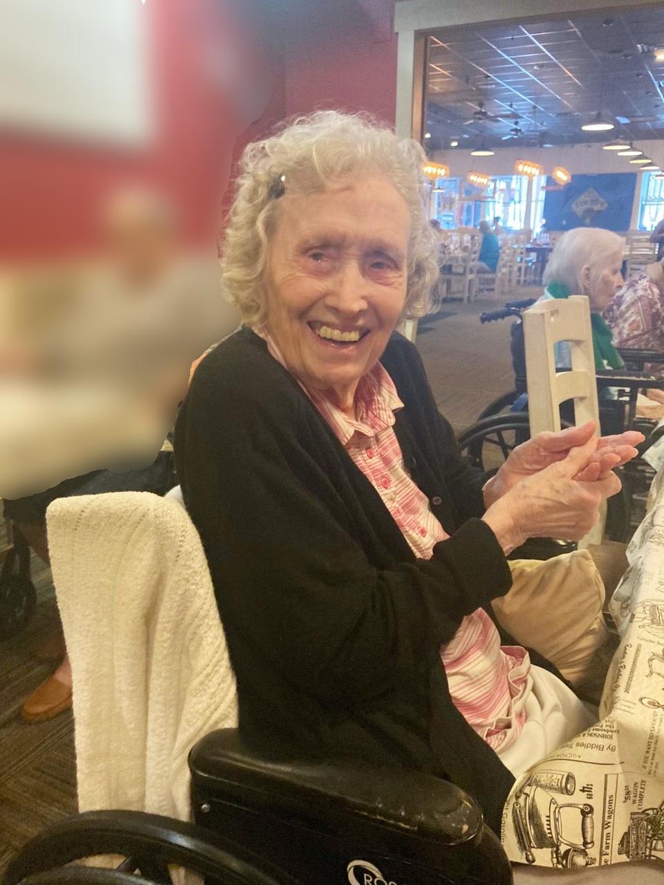 She is doing really well, thanks for asking! At 94, she enjoyed going out to eat with her retirement community group a couple weeks ago! (I blurred out the lady behind her because she wasn't part of the group and frankly looked miserable LOL) Mom turns 95 in December.