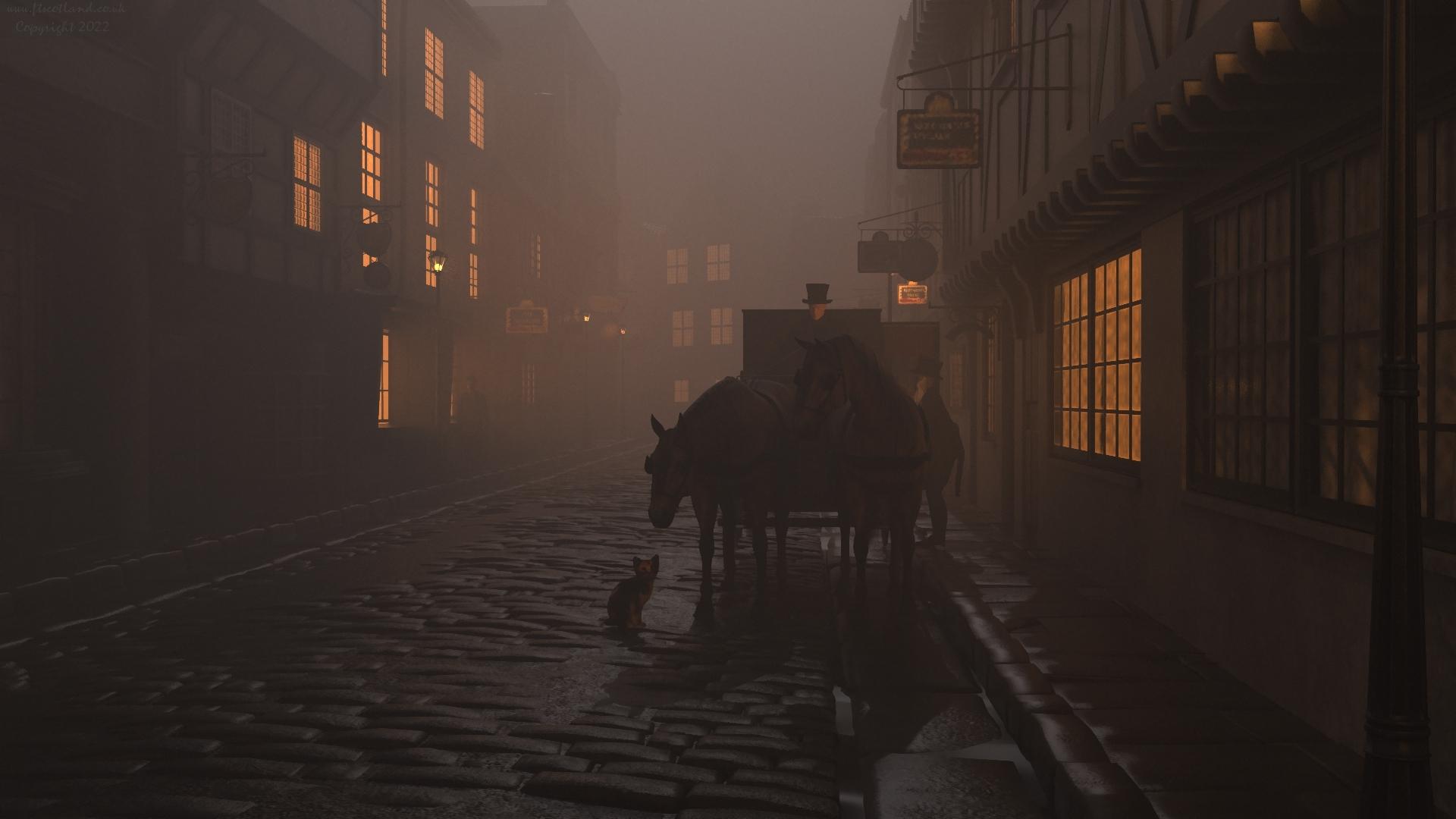 I got the Old Victorian Street but felt it was too dark even in Sun and Sky full sun so it morphed into a night scene. I didn't see the night option for the materials at the time so I did my own :) I wanted to do individual lights inside the rooms in the buildings but there are panels behind the curtains that block the light and are part of the buildings so I couldn't do that so made the glass Emissive. Unfortunately the glass is part of most of the windows in each building and can't be separated into individual rooms, another downer for me. I also had to lower the resolution on all the materials before it would fit on my 6GB graphics cart :) I used a volume cube for the fog and a distant light for the moonlight through the fog.