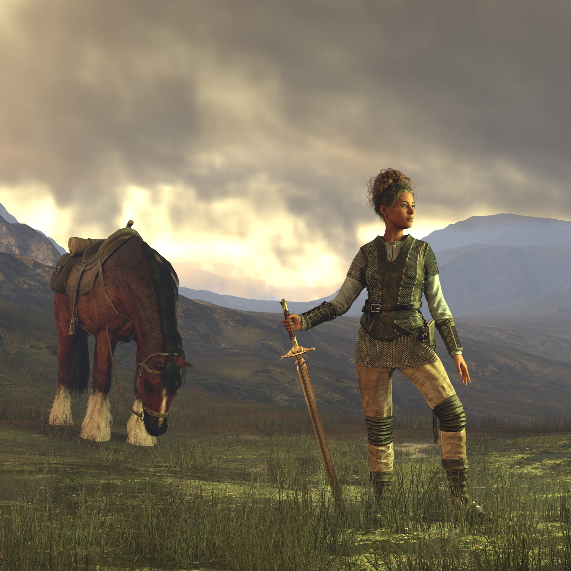 I re-rendered the scene without the skirt and the building, adding in a horse.