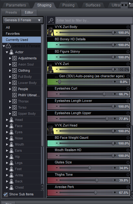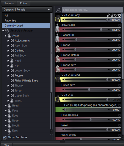 A question I received had me looking at VYK Zuri for G8F again this morning. If she was usable without the required HD Body Shapes for G8F. When I went to look up my copy of the HD Body Shapes in my computers, I found it installed through DIM in one, and totally missing in DIM in the other, and when I looked it up in my Product Library, the name was there, the promo image showed in the gallery, but it would not click open. Weird.