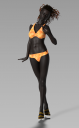 With two Win 10 computers and D|S 4.21.1.13 I loaded up Zuri on each, put her in bikinis, hair, same pose (to show off her muscles), PRO Studio HDR Light 01R. I then dialed out the HD Body Shapes that were loaded onto both Zuris, even the one on the computer without it loaded per DIM. I didn't make a render of her at that point, but dialed in the Body Diversity Morphs for G8F by Dogz that the person had and thought might be usable. I used BD Boney HD Details, BD Figure Skinny, and BD Face Weight Gaunt at 100% (she is wearing the orange bikini). The base Zuri is wearing a bluish/turquiose bikini.