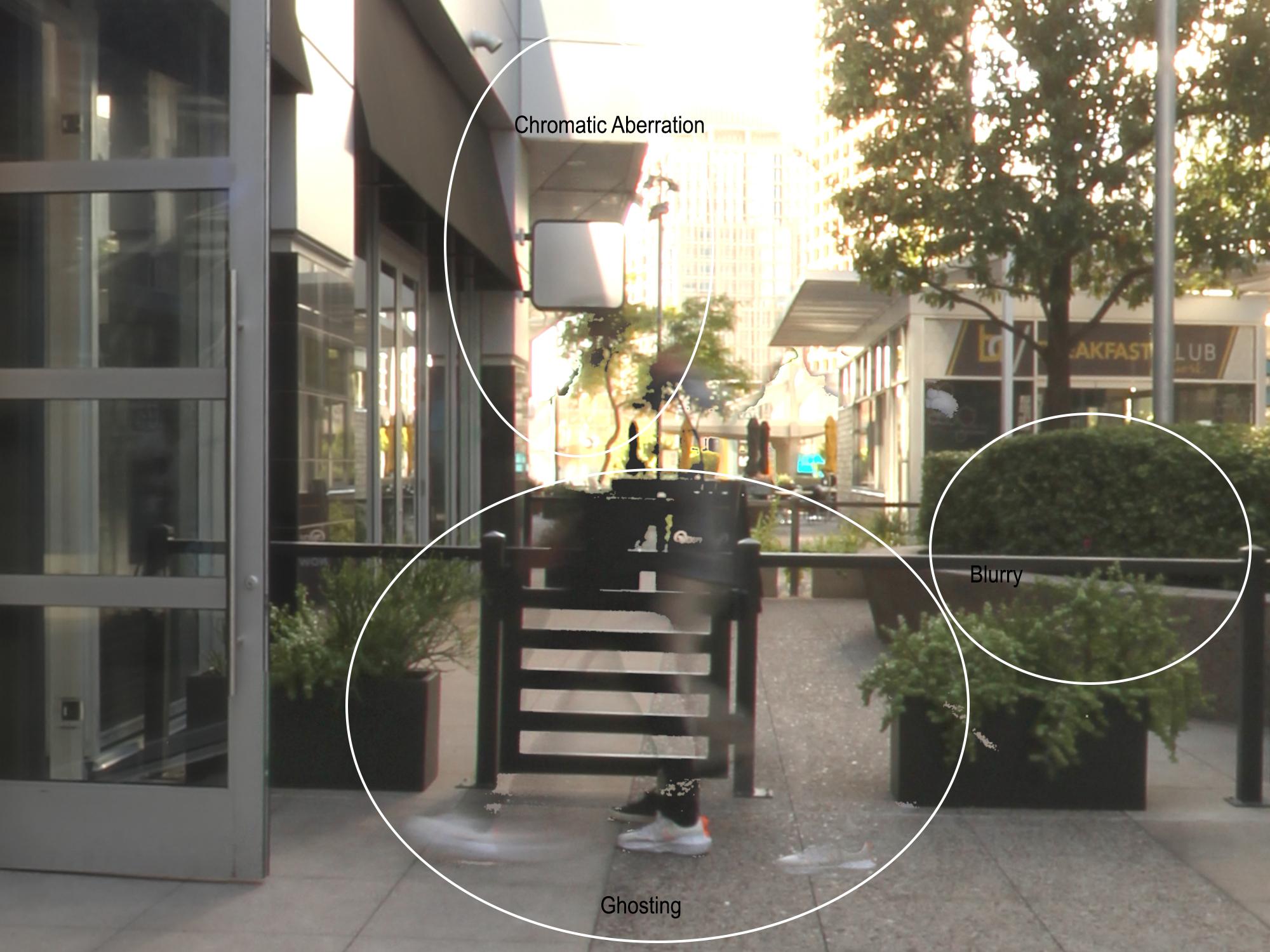 The glass surface seems to be the culprit: after dialing the Refraction Index to 1.0 or slightly above (here: 1.1), you get the result on the right.