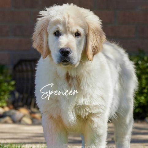 Spencer the Golden Retriever weighed 63 pounds at his 5 monrh checkup, yesterday at 6 months he's 73 pounds. Vet says a 100 pounder for sure (or more.) He's just one big goofball..