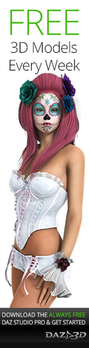 Now the freebies make more sense. Daz is paying to have banner ads on ShareCG.com that link back to Daz. What better way to attract people on a freebie site than offering freebies? Good marketing plan. I'm certainly enjoying it! :-) It also looks like the ads rotate. Different ads at different times.