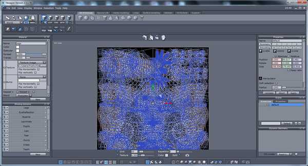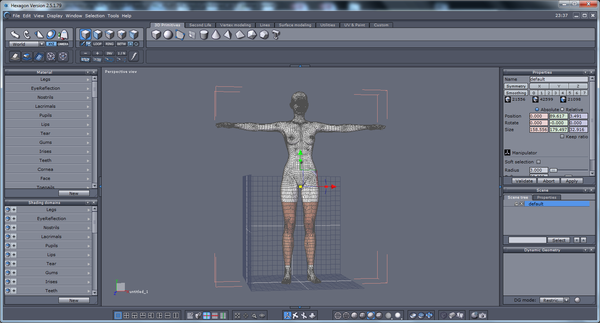 The textures on G2M are high resolution, so slow down the computer when working. At the end of the modelling, you are going to have to delete the figure, and all the textures and shading domains one-by-one, or they'll be included in the final product. This is a huge amount of unnecessary work.