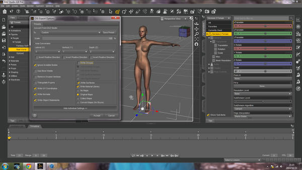 I also got the usual scale deformation inherent in using Hexagon’s scaling factor on export, which many tutorials have said not to do (using Poser presets instead). How did you get yours to scale normal? Do you have some changes to your ‘import preferences’ options?