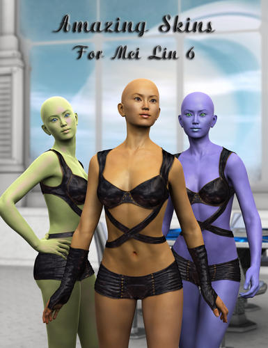 Amazing Skins for Mei Lin 6 is out today, and includes a lot of skin tones variations (so you can also make her more or less asian too), as well as fantasy and sci-fi skins, tools (eyes, gloss) and lights.