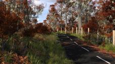 (Note: the paths in UltraScenery aren't really wide enough to be a divided road, but I ignored that for this experiment. I used Dirt Track 2 and Harpwood 2.)