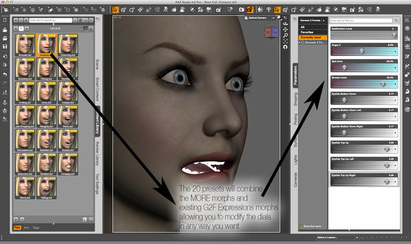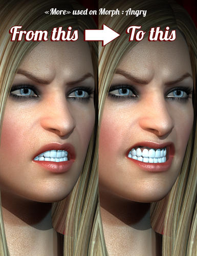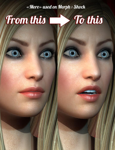 MORE is a set of head morphs for Genesis 2 Females that will enhance your existing expression pack.