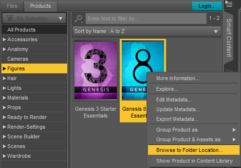 When in the smart content pane, right clicking on a product brings up the context menu. Clicking the "Browse to Folder location..." option doesn't open windows explorer.