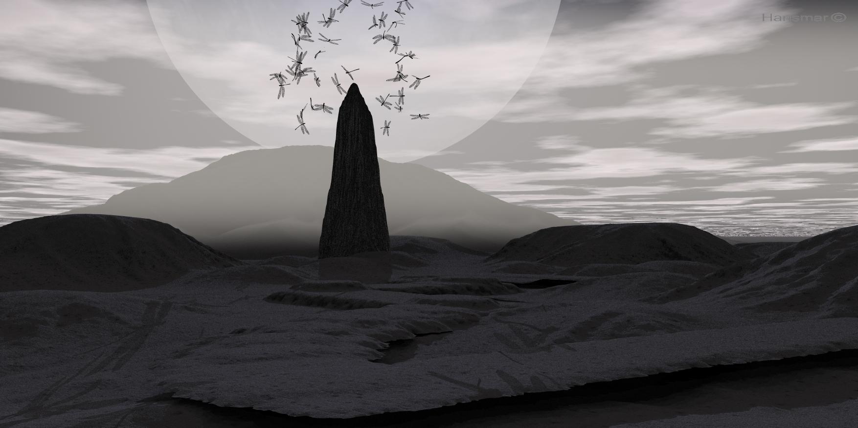 Another quick render from one of RajRaja's scenes. I modified the light, the sky, atmosphere and the location of the camera and added a swarm of dragonflies.