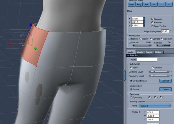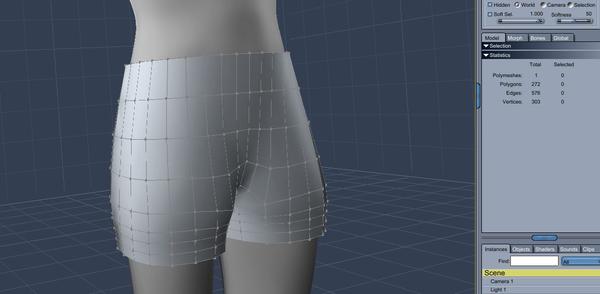 - REPEAT FOR OTHER AREAS - Even though we have used only the simplest tools, you can use the selection tools, deselect, move, and scale to get a very rough fit of the shorts to genesis in a crude way. With symmetry on, move points and lines for a crude fit.