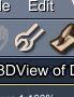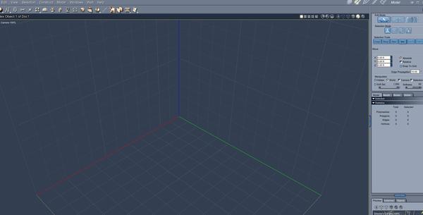 - RETURN TO ASSEMBLY ROOM - If you look in the upper right of the screen, you will see a menu with a hand, a wrench, a pencil, a paintbrush, and a piece of film. Click the hand to return to the assembly room. You should see the genesis character and a giant gray pair of blocky shorts. The shorts should be selected, which you can confirm in the bottom right where the "vertex object" should be hghlighted yellow. If vertex object is not yellow, left click the vertex object in bottom right to select it.