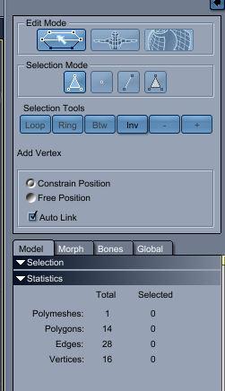 - most of the vertex modeling tools run along the top of the menu.