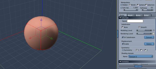 - TESSELATE (SUBDIVIDE) - from the top menu, use EDIT : SELECT ALL or you can use the hot key control A. The entire model should turn red. Now, from the top menu, use MODEL : TESSELATE :MID EDGE TO CENTER . The model should now be broken down into more polygons.