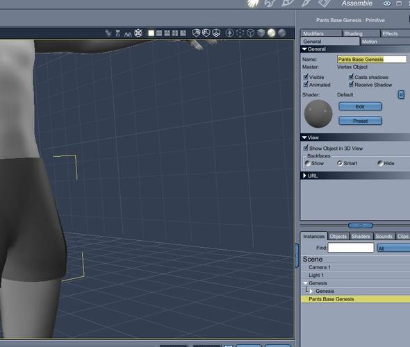 - RENAME VERTEX OBJECT - In the properties tray, if you haven't done it already, rename the vertex object to something meaningful like "Pants Base Genesis", and click
