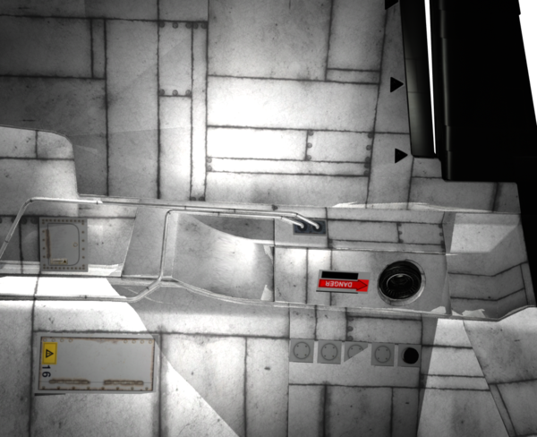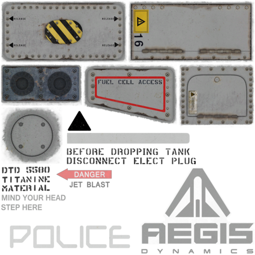 Also on that Top Side image you will notice 4 of the same decal in a row of the circle with rivets, the 3rd 1 in the row is cut off diagonally by some type of Z-Buffering ( where 2 textures are attempting to occupy the same poly face) and it changes based on the angle you look at it..