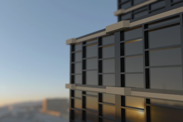 Then there's a final element. Once the sun reaches full sunset, the reflection angles are such that the entire buildings window panels get lit up all at once, which would make the building shimmer almost like rows of jewels as the sky goes dark. With your back to the sunset facing the building, this would make the building look almost as if it was artificially lighted all over.
