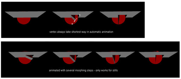 2.)For mechanical moving/rotating parts, using constraints, IK chains or modifers are much easier to setup and animate than morphs. Translating/morphing parts, like the store table lamps, including light intensity, keyframable shaders etc. would probably work best using an Animation group and NLA clips.