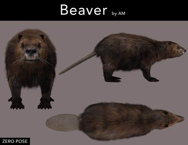 The Beaver, 10 poses, several morphs, finely rigged and weight mapped for both Poser and Daz Studio, and Look at my Hair fur presets to provide the most realistic renders.