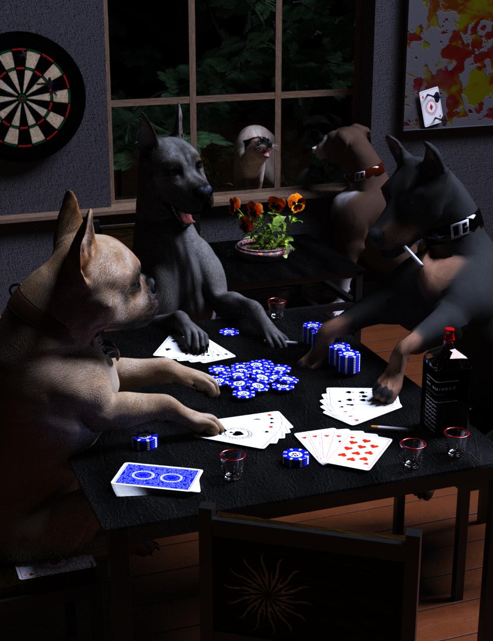 Yo, Fido!  Sit!  It’s your deal.  You promised that you would chase the cat…. but, I am sure, the cat will understand if you are a little late.  So, sit down and deal.  And pass some of that hair of the dog.