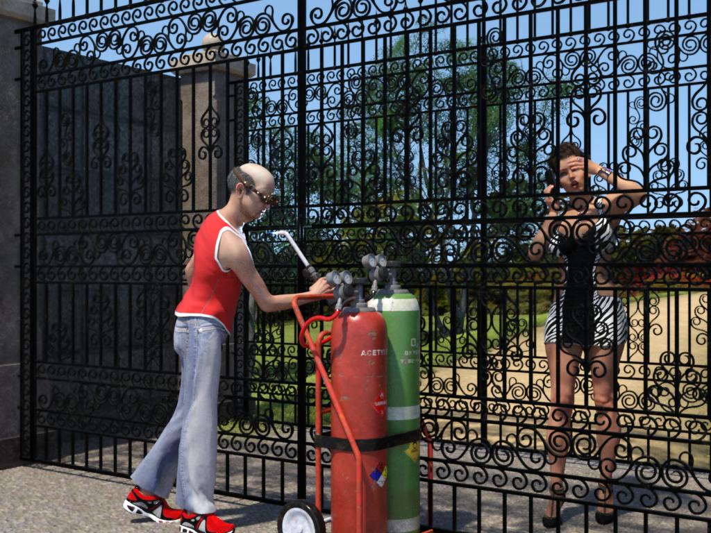 @MelanieL  #06 LOL!  I bet she is wishing that she wore jeans and sneakers.... then she could have climbed the gate