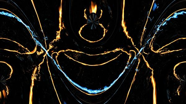 Two horizons, the orange one captured in IBL and a blue one, fed through a series of lenses (one being a spherical mapper) to make some wiggly lined abstraction of fire and ice.