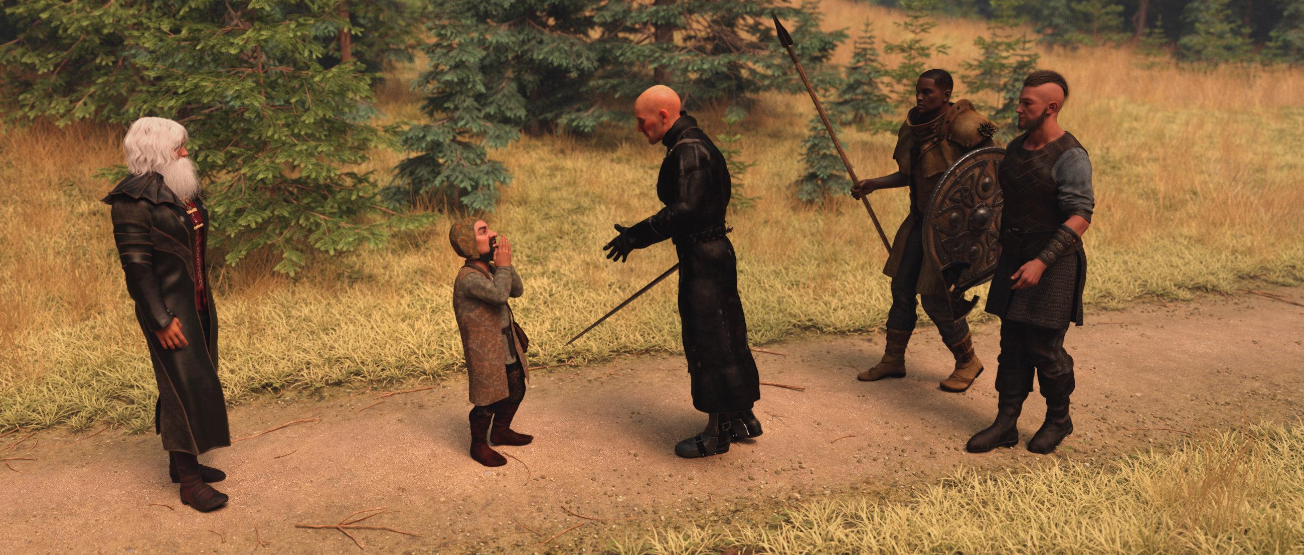 On the way to Torin and the tower they meet a group of five of the Dwarven stone masons working on the tower. They had decided to take position inside the tower just in case. They know what happened last time there was a battle here.