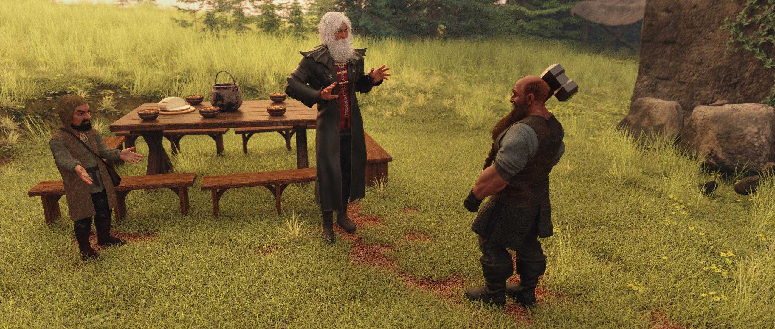 When the clothes are finished, Gnosha quickly makes a set of serf clothing for himself, to perfect the illusion of the important merchant with his serf. Now, using some simple alchemical materials, he makes Aered’s hair white, and his own beard black. To top off his creatings, he gives Aered a fake beard made from some goat fur. Now, dinner is served and Gnosha does help a little with the pork and turnip stew.
