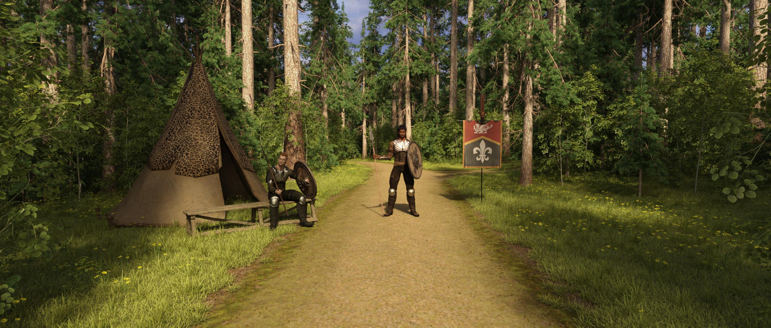 Gnosha also announces that he will make lunch for everyone, and this time, his cooking is superb, even beyond Aereds wildest expectations, a masterful stew, worthy of a king. When lunch had been eaten, it was time to set up the checkpoint. A small tent, a flag and a bench is brought down to the main road. The guards check passing travelers very shallowly, just asking a few simple questions on the purpose of the journey etc.