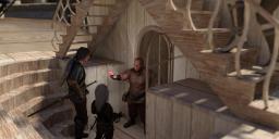 Ghosha looks around to see if he can see Mr Throinain, but he is nowhere to be seen. He walks up to the tall man in the fine hat, who he now has guessed is the Captain of the ship, and puts on his most diplomatic and charming way, for the second time today.