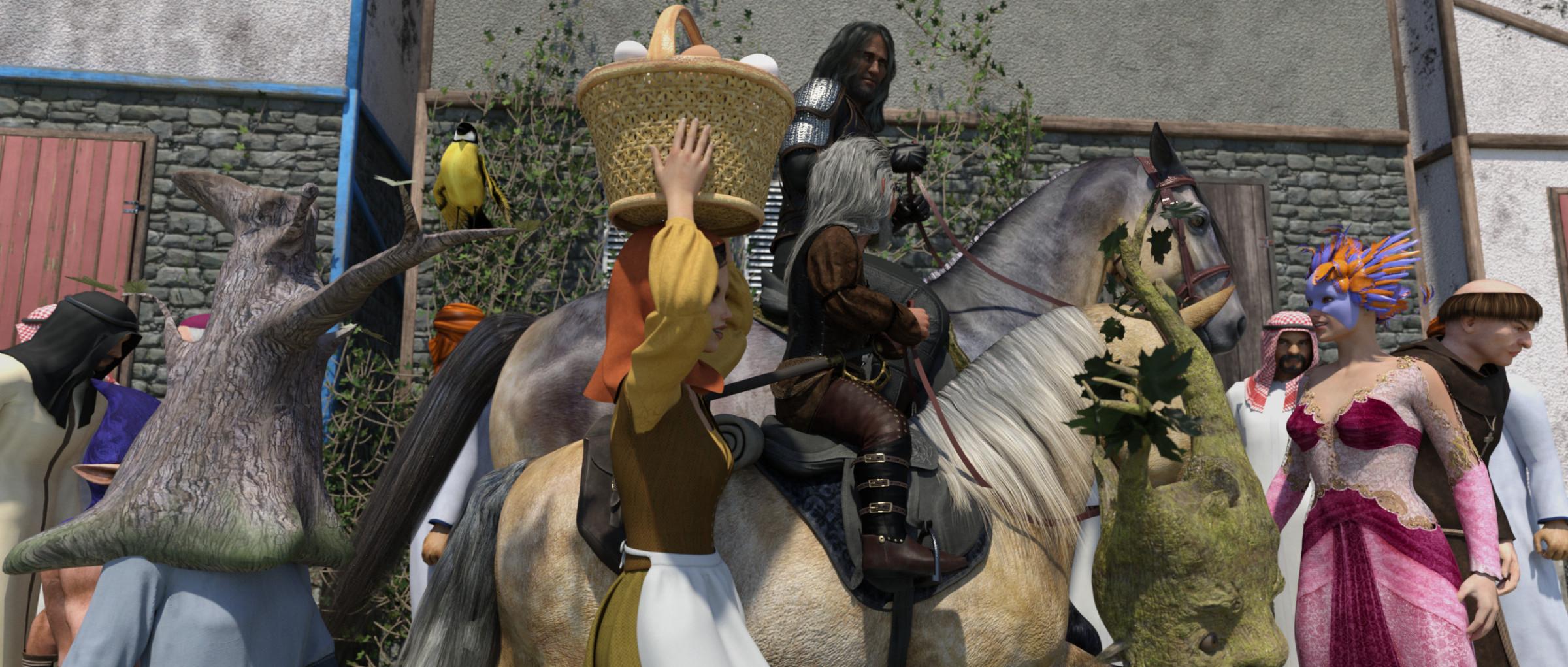 Captain Woode orders Sergeant Gallois to take witness statements from all the caravan members about what they saw at the Bugbear and during the journey back to Erast, and bring the report to the castle as fast as possible, then they mount their horses and set off towards the castle. The carnival, Marda-Zam, is now on, and every street and square in Erast is full of people, most of them dressed in costumes, one more extreme than the other. Riding through the crowded street is slow, very slow. Captain Woode rides up beside Gnosha and says: – “The girl riding with Aered, who is she?” Gnosha replies: – “She was there, we planned to use her for our escape, but change of plans, so we brought her with us, and she has already proven to be useful. With the right mentorship she can be a valuable asset in my team.