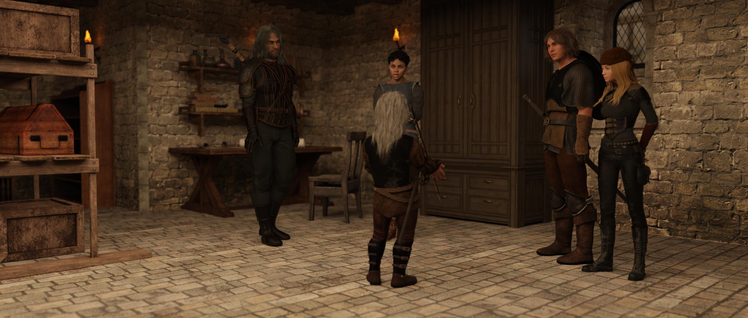 The meeting ends with Odan saying: - “We will gather tomorrow morning at eight.” Gnosha thinks they have not been exposed, that their low profile worked. When they came back to their room Gnosha says: - “Aered, we’re in a bit of a pickle, I need to think and think fast. The gates are locked, we’re locked inside a building full of lunatics who want to give up their lives to become undead and rule these lands in eternity in a regime of terror. We just can't let that happen, not on my watch. We might need another set of clothes, again. Maybe if we can pose as merchants and join a caravan. So first things first, how do we get out of here? Any ideas Aered?