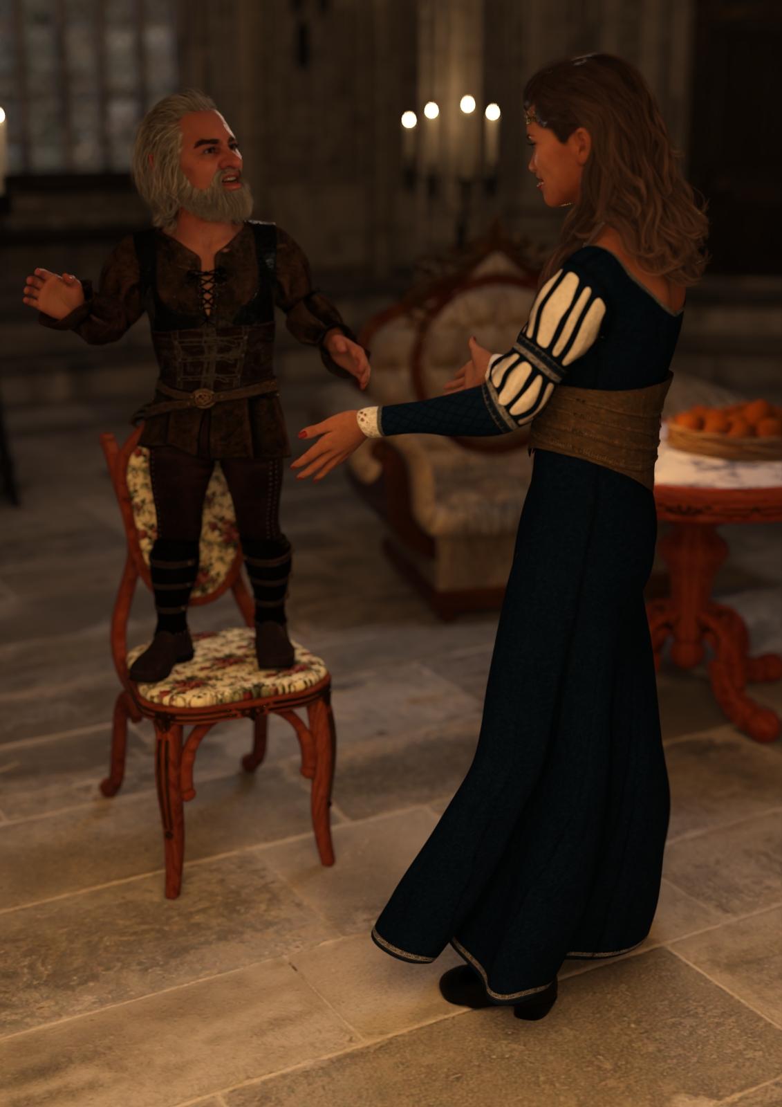 She turns to Sir Heskan: - “Make sure you have adequate transportation for Gnosha, Aered and their new companion, if she wants to join. And also, ensure they have adequate equipment too.