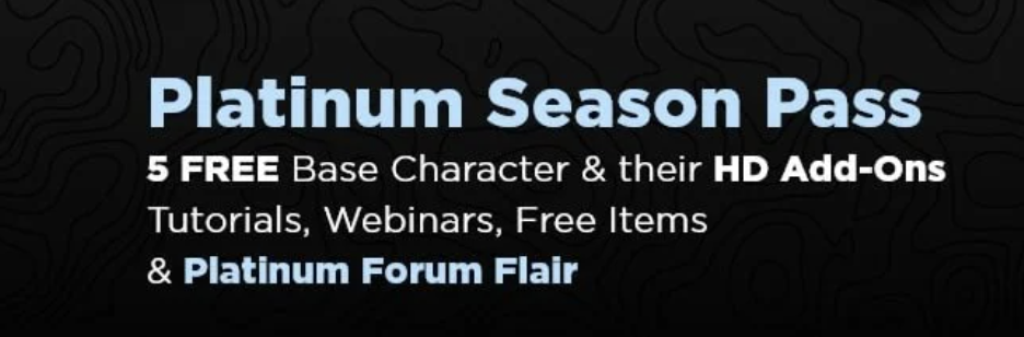 Well, for those who collect Daz characters, the offer is actually not too bad. A base character plus HD add-on is about $60, less some change. With a PC+ introductory discount its still about $40. The "Platinum Season pass" is 5 characters including HD add-on plus a bit of extras for $199 (or $149 if you are PC+ already). You get two items free. But that could be anything. If I would be part of the marketing crew, I would add a statement like "Total minimum value of $xxx".
