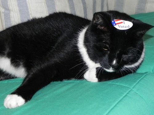 that is so cute. It's so easy a, cat can vote. As the boom-mic is tossed across the stage, lol.