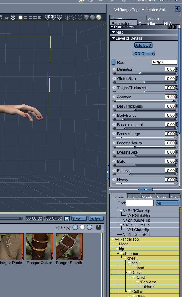 Got it fixed. One more question is there a way to edit the ranger vest on victoria in that pose. If i select the model for the ranger top in the instance manager then click the icon to edit in assembly room the vest jumps off the character. If i select the ranger top and everything included with that model, hip, abdomen, etc. i can only edit it in the modeling room. The problem is I end up deforming the mesh a little more than I need and jumping back and forth between the two rooms which makes a bigger mess. So I make the edit jump back if it doesn't work I undo the edit and start again. If I had to fix several instances of poke through this way the vest would probably look a little off (odd bends and folds) I would think.