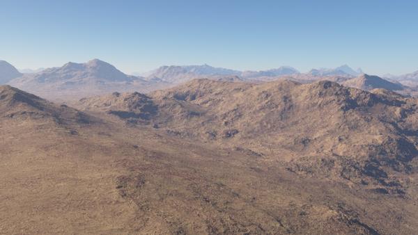 Just re-acquainting myself with the free version of Terragen after a few years non-use. It is truly amazing, with a planet-wide terrain, correct horizon, true atmosphere and natural light. This render is after a few minutes work, without getting much into textures and doing nothing for atmosphere.