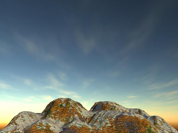 Did a lot of editing in the terrain editor, mainly using the advanced fractal noise settings. The texture can do with a lot of work, but in general the definition is OK, but the final product looks nothing like the original Bryce terrain. Could just as well have designed the whole thing in Carrara :)