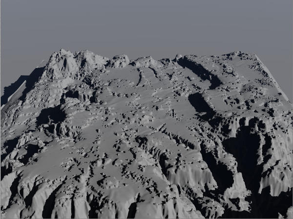 This one was made from the same Grand Canyon data that I used before, using a plain old .jpg, minimal smoothing and erosion in Bryce - the detail is pretty good. It should be really great with 16 bit .tif or 24 bit .bmp.