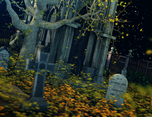 I love the tombstones, though more serious renders probably want to avoid close-ups unless they want to get more laughs than scares. :)