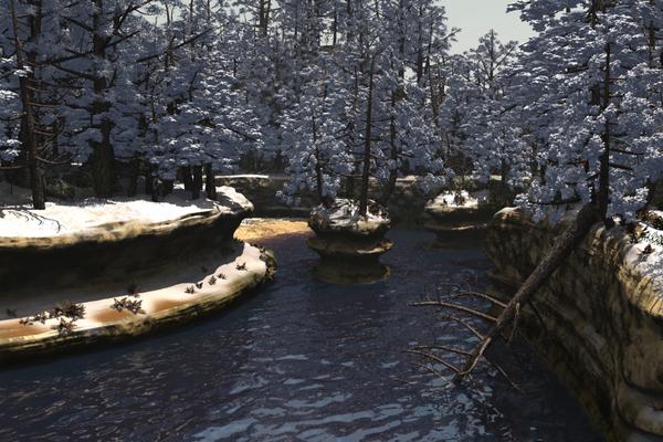 EP, That's very cool geometry for the river banks. And I love the fallen tree - such a beautiful detail to add realism to the scene. I also like the icy river and icicles idea. The icicle shader can be a fun thing to create. The snow on the branches seems to be different from the snow on the ground. Is it based on a reference too? It's an interesting effect. Almost seems like one is snow (on the ground) and the other is half-ice. When I first browsed the pages I missed, I thought that your frost WIPs were for this river and rocks scene, so now I am very curious to know what's it was really for. I hope we get to see it :) I'm sorry about your weather trouble. I hope it gets better. I grew up and still live where snow is very rare, and therefore is associated with winter fun, and a reason to celebrate in itself, not a disaster (although the municipal services would most surely disagree with me...). Also, thank you for updating the index thread!