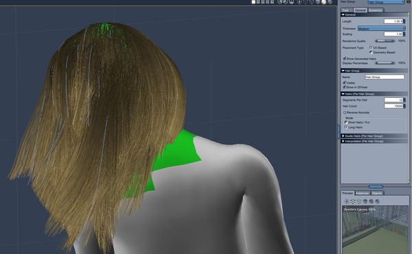 I wasn't totally happy with the hair texture on the head of the woman so I thought I'd add a little bit of Carrara hair at a low hair count just to look like random fly-away hairs. This is my first time using Carrara's hair... why did no one tell me how much fun it is? I just spent 40 minutes cutting and brushing hair around. :)