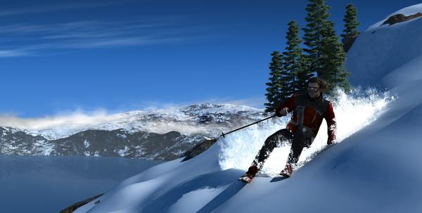 Thanks you! The jacket in the close up image is the Daz product "Adventure Jacket". I was using it as a stand in (it has a nice clean UV map) while I tried different textures to see what they would look like in place. I'm still trying to figure out the whole UV mapping thing to apply the texture to the jacket I modeled. I'm using photoshop to piece together bits and pieces I've pulled from the web. The modeling is all done in the Carrara modeling room. Besides adding walls to existing models the goggles are the first actual object that i've modeled. I used the curvey line tool to create the shape of the lens and then duplicated that and extruded the frame (pretty much the only two tools I know how to use at this point). Same process for the skis.