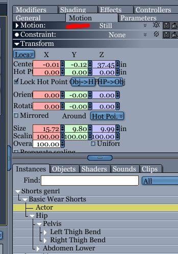 highlighting actor, motion and constrait are greyed out.
