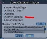 the poser import has a convert skinning