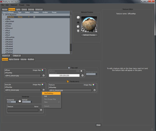 And Legionair, that's very useful to know. Your experience is appreciated! I don't see a translucency option in the materials options, however. How does one go about changing a skydome to that?
