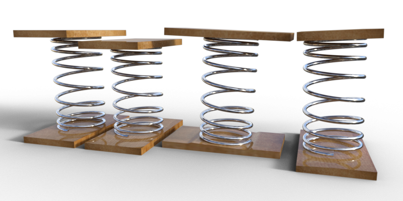Thank you all for your comments. But please be aware that when I say "Quick and Dirty" for the morphs, I do mean it. For the compression morph I scaled the spring by 90% in the Y axis, making the wire cross section a little oval, then moved the top board down to meet the spring.